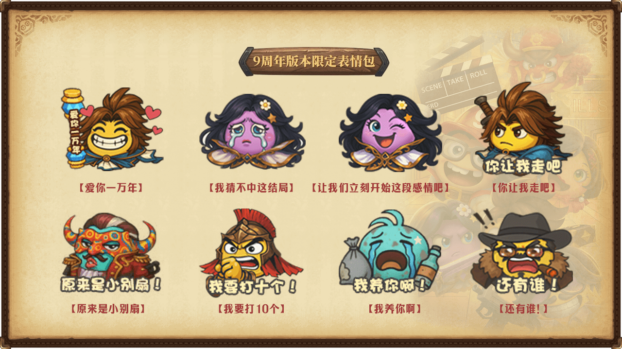 九周年当然要搞点不一样的,就连表情包也得是最有梗的,超有电影画面!